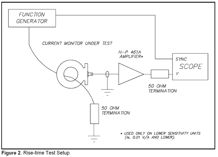 All current monitors are tested for rise-time performance at two points in the manufacturing cycle. The test set-up is shown in the accompanying diagram (Figure 2).